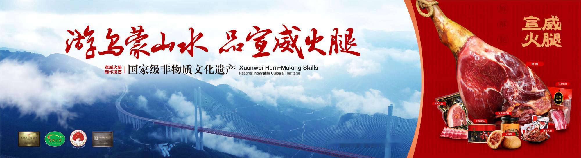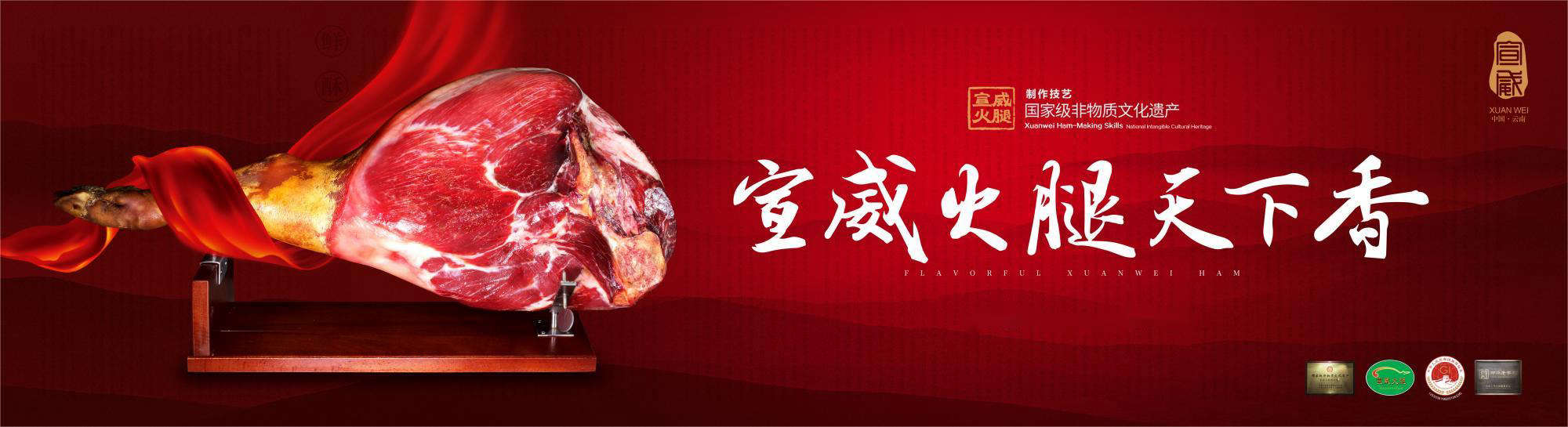 据《宣威县志》记载,清雍正五年(公元1727年),就以身穿绿袍,肉质厚,精肉多,蛋白丰富鲜嫩可口而享有盛名。清光绪年间,曾懿编著《中馈录》中收有“宣威火腿”的制法。据此及有关史料推断,宣腿之生,最迟明末即成,雍正时代即流入滇川首府,清末流到东南沿海,民国初年,以浦在廷先生为首的火腿公司已将火腿罐头远销东南亚。1923年孙中山大总统题赠“饮和食德”,宣威火腿从此名声大震,香飘四海,载入世人食谱大全。