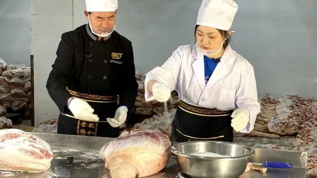 强化宣威火腿的技艺传承,建成2个火腿非遗传习馆、1个宣威火腿制作技艺项目保护单位,通过“1+N”的带培方式,精心培养徒弟60余人,非遗传承馆和文化馆的建设较好地助推了宣威火腿独特制作技艺的保护、传承和发扬。大力培育“云腿秘匠”劳务品牌,通过“理论+实操+火腿企业观摩+鉴定考试”,每年培育近200名火腿加工初级技能人才,同时将“云腿秘匠”劳务品牌与企业用工需求有效对接,目前宣威市外从事宣威火腿加工经营企业及个体工商户5000余户,从业人员达9800余人,实现转移就业促增收再上新台阶。依托火腿产业园的电商直销平台,培养了一批带货“网红”、金牌主播、产品代言人,实现线上线下同步销售,销售区域覆盖上海、北京等20多个大中城市,部分产品远销香港、新加坡、韩国等地,销售份额约占全国火腿市场的33%。