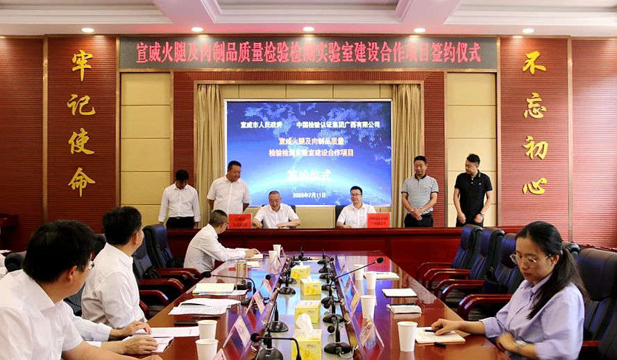 7月11日,宣威市与中国检验认证集团广西公司举行火腿及肉制品质量检验检测实验室建设合作项目签约仪式。