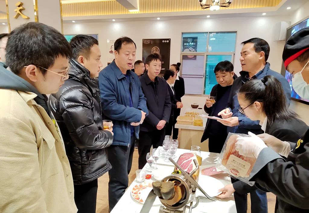 宣威市委常委、副市长桂腾荣陪同学习考察并简要介绍了宣威火腿产业发展、下一步工作重点等情况。希望双方持续加强合作,共同加大火腿文化宣传推介力度,强化火腿品牌建设,增强产品竞争力,将更多中国火腿销售到世界各地,促进火腿产业高质量健康发展。