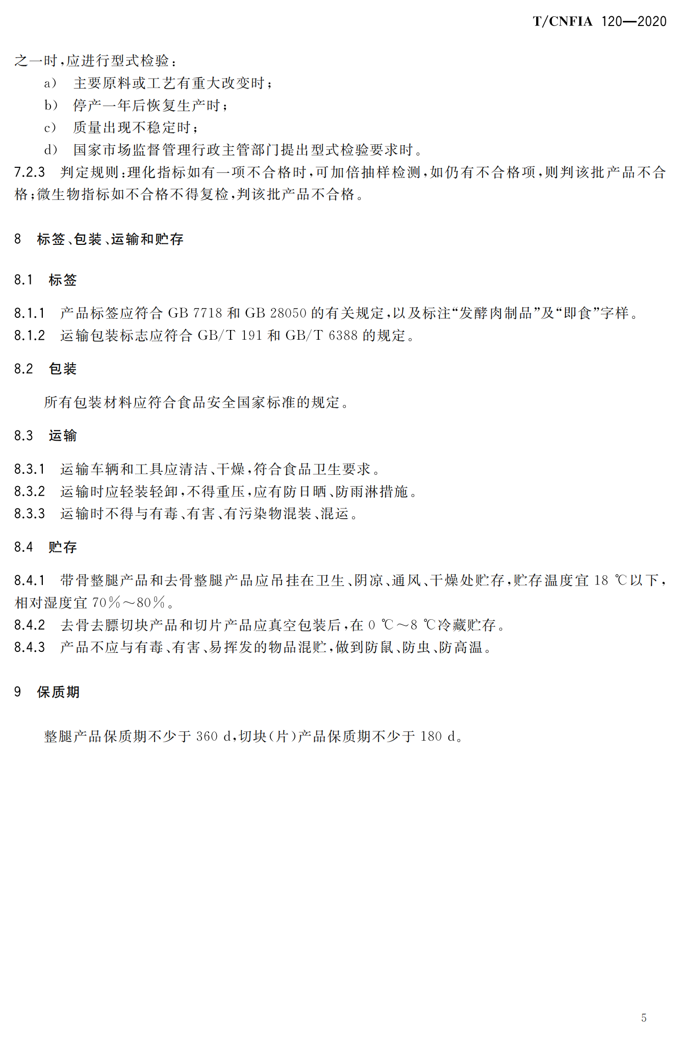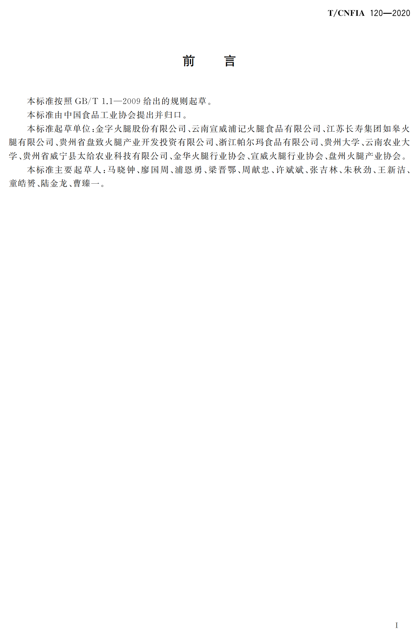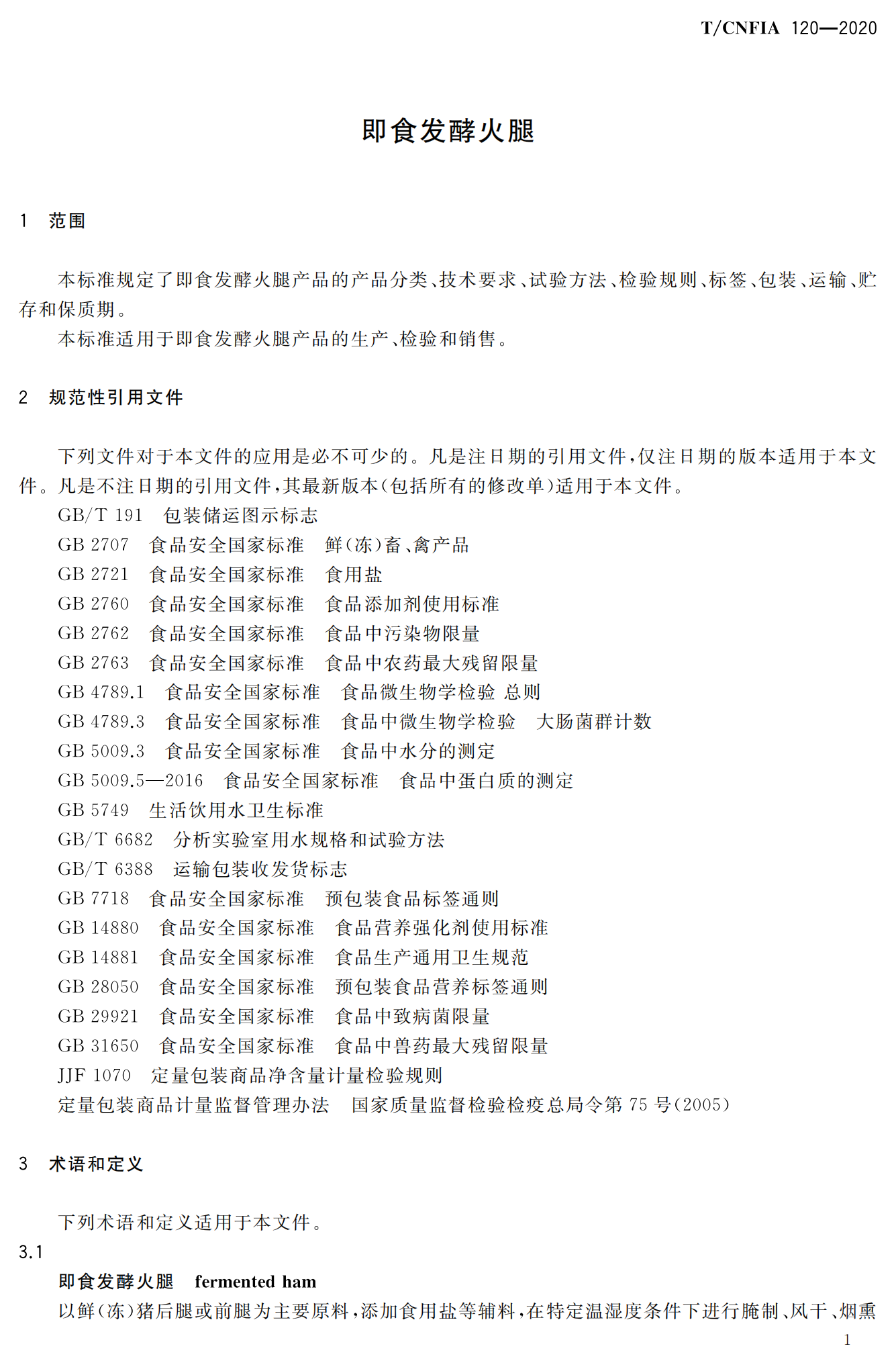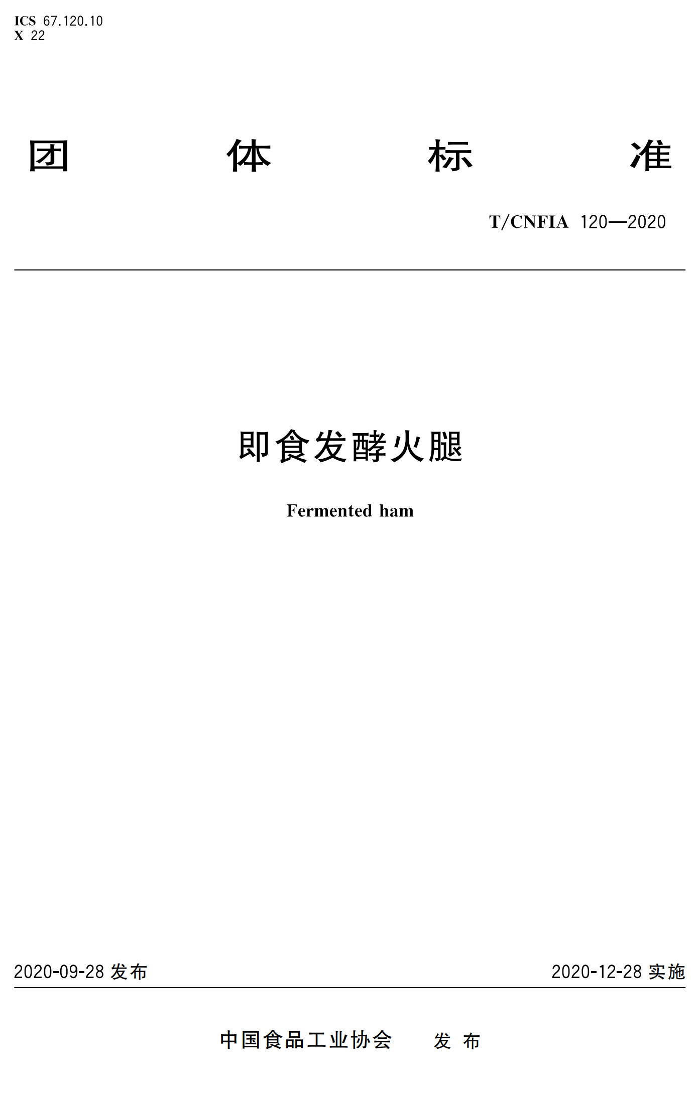 行业标准《即食发酵火腿》